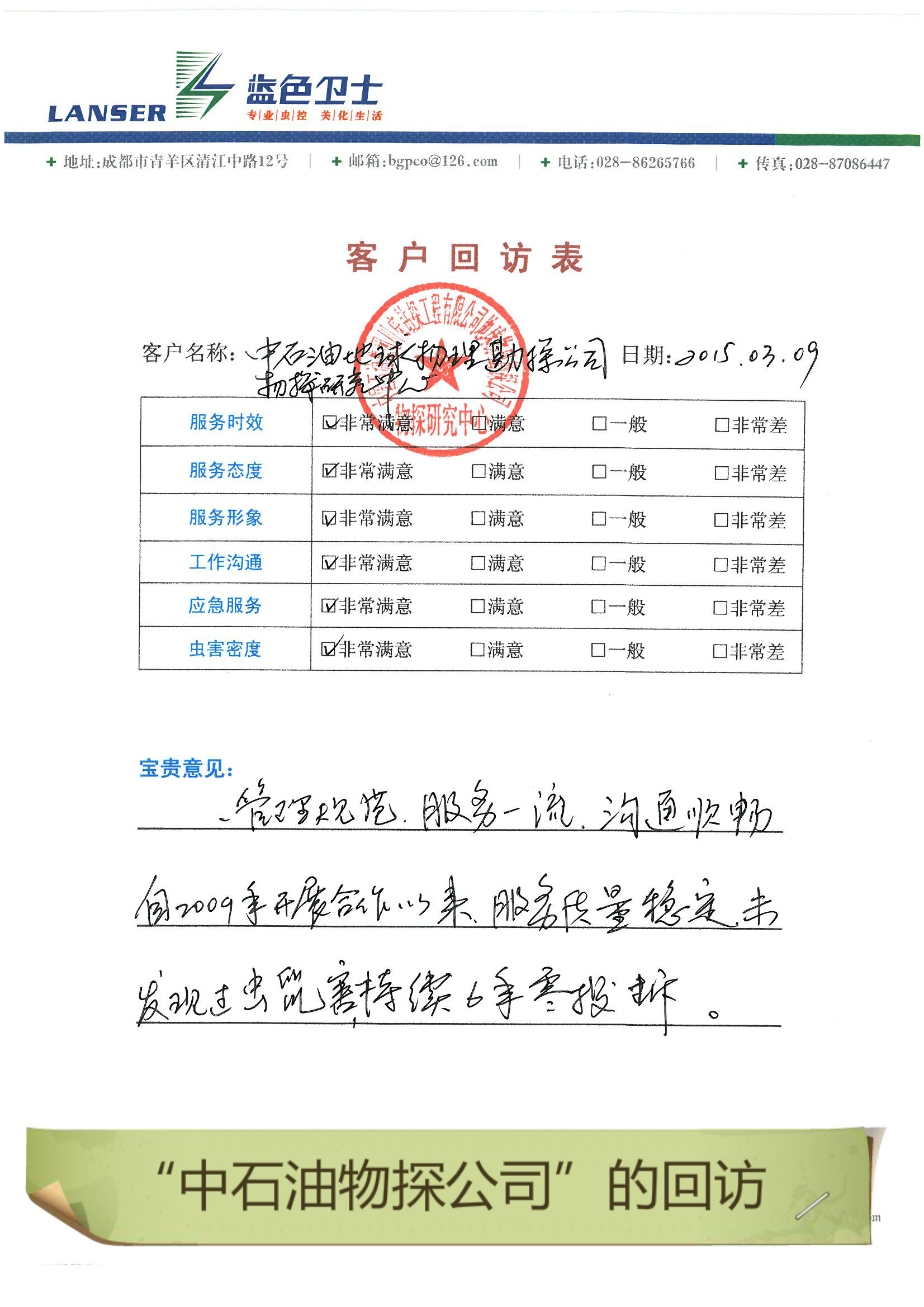 中石油物探公司的回訪(fǎng)評(píng)價(jià)